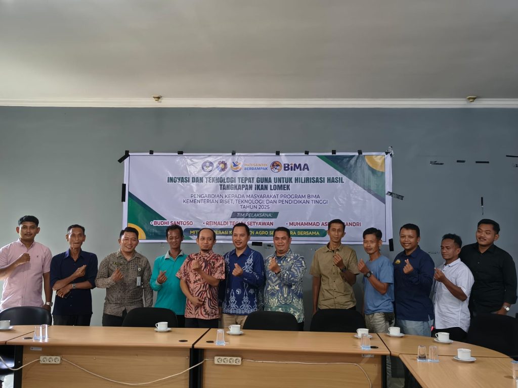 BENGKALIS – Dosen Politeknik Negeri Bengkalis melalui Program Pengabdian kepada Masyarakat BIMA dari Kementerian Riset, Teknologi, dan Pendidikan Tinggi (Kemdiktisaintek) tahun anggaran 2025 sukses menyelenggarakan kegiatan “Inovasi dan Teknologi Tepat Guna untuk Hilirisasi Hasil Tangkapan Ikan Lomek”.